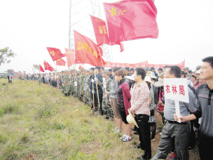 当日上午10点,植树现场一番热火朝天的景象,每个单位的植树现场都树起了标志牌。机关干部们在绿化专业人员的指导下,挥锹培土,按照要求,先放肥土再放底土,以利树木成活,最后不忘细心为树木浇上“定根水”。