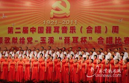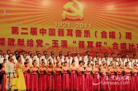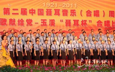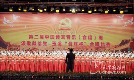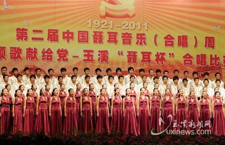 6月13日晚,随着一曲雄壮的《祖国颂》,庆祝中国共产党成立90周年暨第二届聂耳音乐(合唱)周系列活动之——玉溪市“聂耳杯”合唱比赛在聂耳文化广场拉开帷幕。