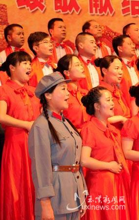 来自市直及中央、省驻玉单位的12支队伍逐一登台亮相,《山丹丹花开红艳艳》、《东方红》、《祝福祖国》、《在灿烂阳光下》、《四渡赤水出奇兵》、《祝福祖国》唱出了对祖国的热爱;《金蛇狂舞》、《告别南洋》等歌曲表达了故乡人民对伟大人民音乐家聂耳的缅怀之情。