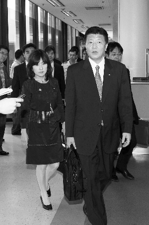 日,新藤义孝(前右)等3名日本议员飞抵首尔。新华社发