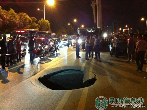 昆明信息港讯 通讯员龚庆萍 8月21日晚10点左右,一市政工程在北京路盾构掘进施工中,地面出现一个长2米、宽1.5米的塌陷洞坑,施工方立即启动应急预案,用混凝土回填,8月22日凌晨2点前路面交通恢复正常。