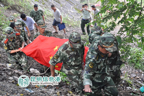 “姚元军,我们接你回来了!小姚,回家了!”昨天下午4点45分,在距离姚元军与毒贩搏斗坠江181个小时零5分钟后,在边防官兵和搜救群众的护送下,姚元军的遗体在坠江地被抬上岸,闻讯赶来的群众和边防官兵一遍遍呼喊着姚元军的名字,声音回荡在瑞丽江上。随后,姚元江的遗体被盖上火红的国旗送往瑞丽市殡仪馆。