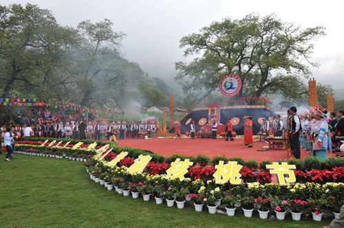 昨日,漾濞核桃节启动仪式现场。当日2011年中国·大理漾濞核桃节在漾濞县光明村开幕。记者夏传武/摄