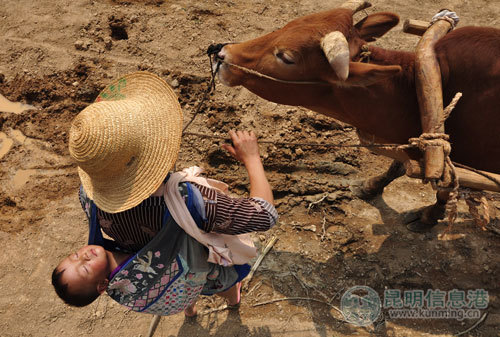 在文山旱灾严重的地区,有的村民要走几个小时才能拉到水 记者文若愚/摄