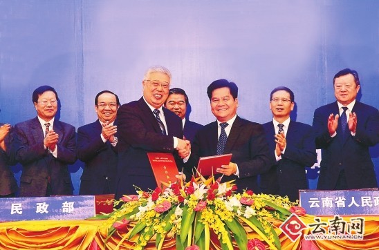 昨日,民政部与省政府在昆明举行工作座谈会,并签署了《加快推进云南桥头堡民政事业改革发展合作协议》。