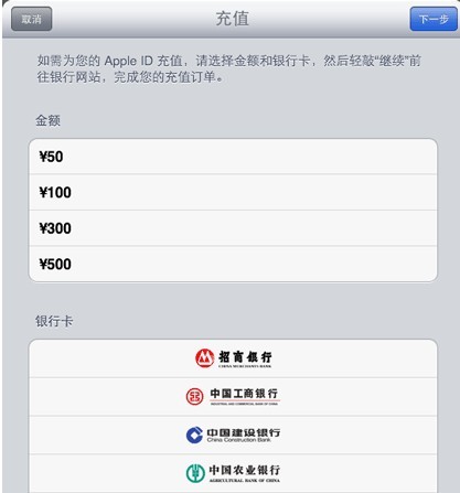 目前,App Store支持招商银行、中国工商银行、中国建设银行、中国农业银行等国内主要银行的信用卡。