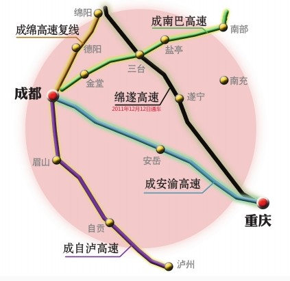 成都市交委透露,2012年成都将有成安渝高速、成绵高速复线、成自泸高速、成南巴高速等建成通车,成都的交通路网将越来越密集,大大缓解现有高速公路的交通压力。图据华西都市报