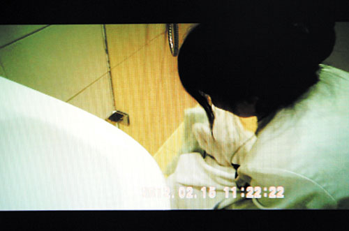服务员“老师”的操作很熟练,可接下来她的动作却让记者看傻了--她把专用的抹布放在桶里涮了涮后就挂在了门上,转身拿起客人用过的面巾擦拭起刚喷洒过清洁剂的面盆。