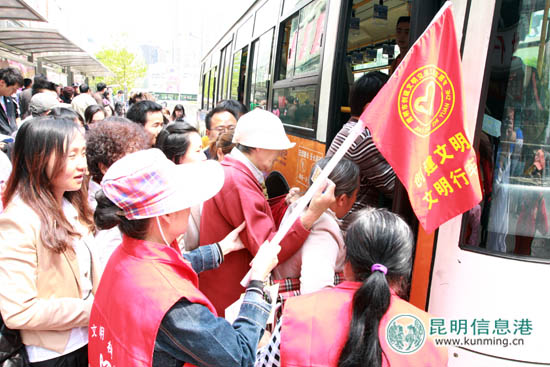 “交通安全畅通,需走好每一步”是他们的口号,醒目的印在他们手中小旗子上。他们是五华区的文明交通志愿者,遍布从青年路口到小西门龟背立交的多个交通路口,他们以无声的语言、实际的行动,向昆明市民发出“从我做起,共同维护公共秩序”的号召。