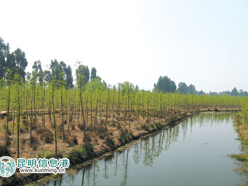 市滇管局水利管理处中山杉种植负责人徐建祖介绍,昆明市生态建设急需大量苗木,异地采购苗木成本高,于是采取招商引资的形式,市滇管局、林业局、水务局三个部门建设苗木基地。