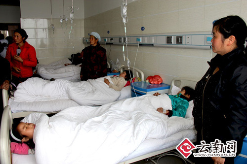 “昨天下午五点左右,就陆续有学生来医院检查,后接到有关领导的电话后,我们立即组织100多名医务人员作准备,抽调内科、急诊科、内二科、内三科和消化内科五个科室的专家应急。”镇雄县人民医院郭昌贵院长告诉记者,从9日下午6时以后,到医院检查治疗的学生络绎不绝。医院立即成立了以院长为组长的救治小组开展工作。先是在急诊科设立分诊室,对前往检查和治疗的学生进行诊断,然后根据病情对所检查的学生进行入院安排和出院劝诫。