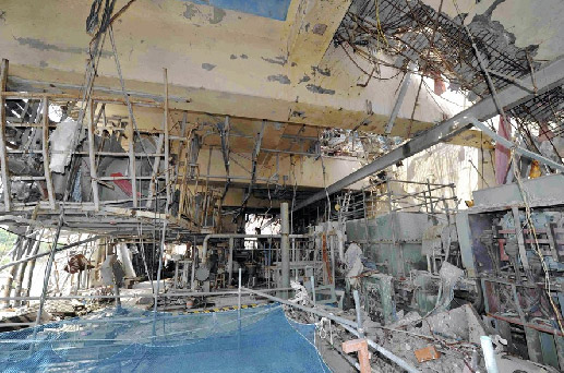 日本福岛第一核电站4号核反应堆在核泄漏事故发生14个月后,日本政府和东京电力公司26日首次向媒体公开该反应堆建筑的内部景象。现场一片狼藉,如被空袭过的战场遗址。