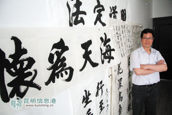 “这是在挑战我呀,哈哈!我一口答应了下来,就取来斗笔和一桶紫土(化工原料)直接往石头上写,‘昆明国际机场’六个一米高的字,我六分钟就搞定了。”回忆起当时的场景,丁炳很激动。