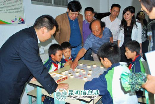 领导与小学生切磋棋艺 实习记者 万佼/摄