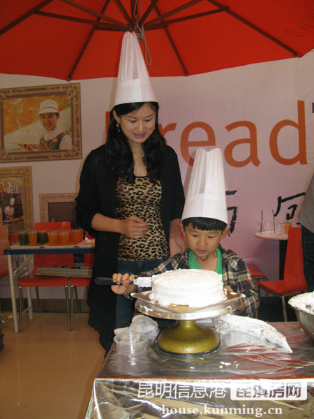 昆明信息港讯 记者席靖辉 “俊客会俊发宝贝月蛋糕DIY·亲子活动”今日上午9:30在新西南广场面包新语温馨举行。来自俊园里的30个俊客会会员家庭快乐上演了一场“蛋糕DIY 温情show”。