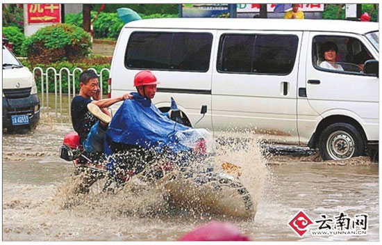 菊花村东郊路出城方向往年雨季曾有近千米路段被淹,记者昨日下午3点在东郊路看到,淹水情况比以往好多了,只是在东郊路69号云南建工建筑机械厂的巷道内,积水深约二三十厘米。紧挨巷道的职工院坝,早已用水泵在抽排水。院坝里一老大妈说:“虽然我们垫高了院坝路面,但还是要这样抽水,要不然漫出来也会淹得没法出行。”