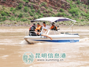 到达金沙江边后,中队官兵在当地群众的带领下,6人分乘两艘快艇沿金沙江江面搜索,6人沿金沙江边进行拉网式搜索。