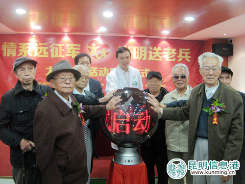 昆明信息港讯 记者纳娅 26日上午,“情系远征军 光明送老兵”公益活动在昆明普瑞眼科医院启动,8名远征军代表和云南多家主流媒体代表参加了启动仪式。