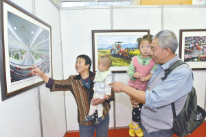 市民在摄影作品前驻足观看。记者杨海冬