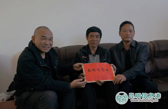 皎平渡镇人大主席聂绍雄(右一)、发展村委会支书代光学(中)接受昆明信息港工作人员帮扶金 徐翔/摄