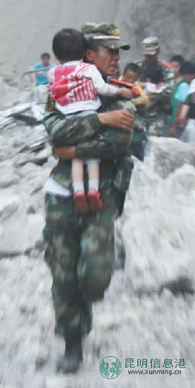 彝良地震发生后,解放军赶到灾区对受灾群众进行救援。资料图片