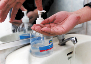 市民抱怨公共场所洗手液“清汤寡水”。首席记者赵伟摄
