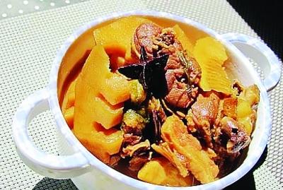 7、鸭块已熟,大火收汁,淋入少许香油即好。 柳 扬 整理
