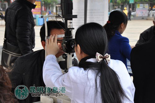 爱心企业为广大人民群众做白内障的筛查。杨晓静/摄