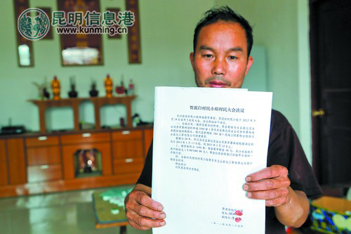 记者了解到,这片山地由八寨镇茅草寨贺泥白村小组集体所有。在该村小组组长陈杨福家中,陈告诉记者,早在1993年5月,这片地就租给当时的马关县白糖厂(国有企业)用于造林,租期为20年,租金为15元/亩。