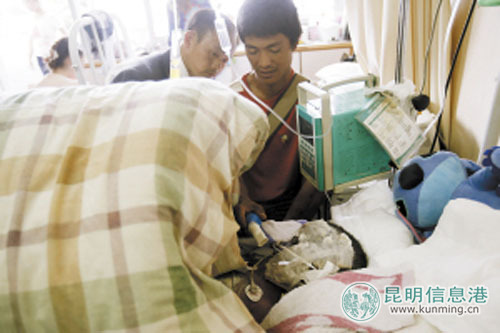 小成平父亲杨小明说,他们是永德县亚练乡兔乃村新寨组的村民。5月7日,妻子带着小成平到自家的玉米地里做农活,没想到就在焚烧杂草时,在一旁玩耍的小成平竟被大火吞噬。经过初步诊断治疗,小成平属3度烧伤,烧伤面积达60%。医生告诉杨小明,虽然孩子已经暂时脱离危险,但如果要治愈就得做皮肤移植,手术费保守估计需要30余万元。