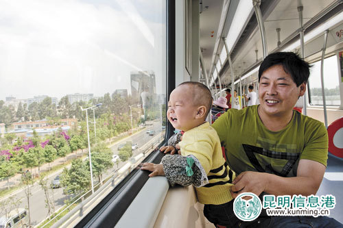 昨日清晨,随着昆明地铁1、2号线首期工程南段(晓东村站—大学城南站)迎来载客试运营,许多市民纷纷怀着好奇的心情乘坐上疾驰的地铁列车。