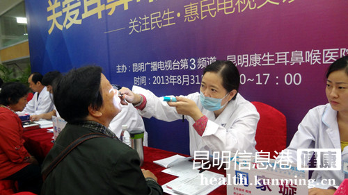 昆明信息港讯 实习记者张子源 8月31日,由昆明广播电视台第三频道携手昆明康生耳鼻喉医院举办的,以“关爱耳鼻喉 幸福长相伴”为主题的专场惠民电视义诊,在康生耳鼻喉医院门诊大厅有序开展。由著名耳鼻喉名医李咸龙领衔并亲诊的西南最大耳鼻喉“名医团”——“康院长”专家团现场坐诊,8位专家以精湛的医术和多年临床诊疗经验为患者免费进行诊断检查。除此之外,所有前来就诊的患者均可享受价值306元的耳、鼻、咽喉三项电子内窥镜检查,并当场免费出检查报告。