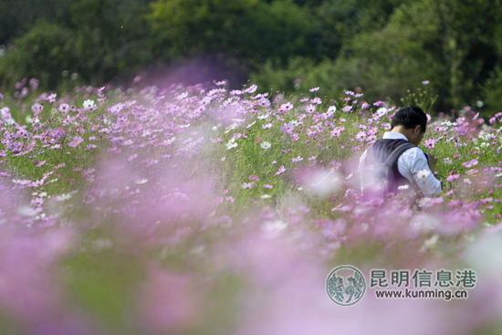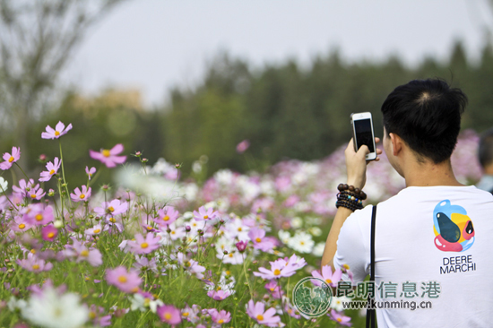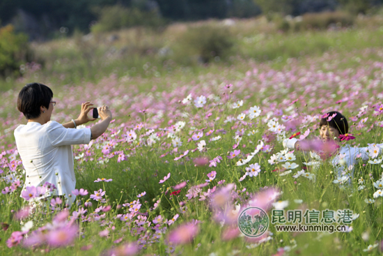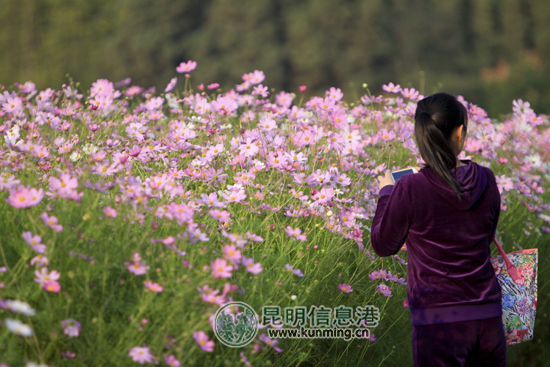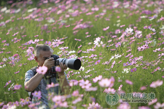 乃古石林波斯菊花海吸引了大批摄影爱好者前来采风 记者王鹏/摄