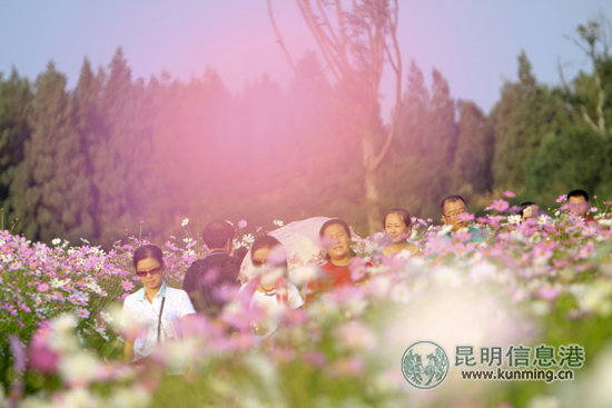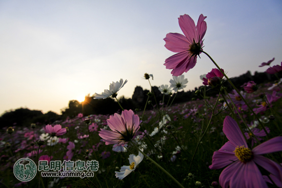 夕阳下的波斯菊花海弥漫小文艺 记者王鹏/摄