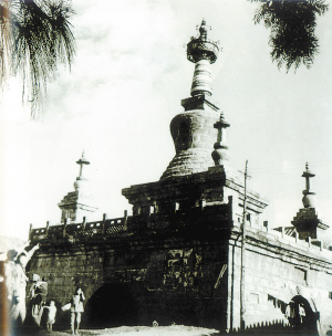官渡金刚塔位于官渡螺峰村。始建于明天顺元年(1457年),俗称“穿心塔”。全塔用砂石砌成,塔座呈方形,四面有拱形门相通。主塔高16米,上建五座塔。四隅的小塔系清代重建。廖可夫摄于1972年