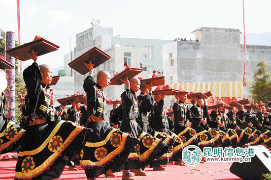 届时,来自大理南涧民间跳菜艺术团将表演原生态歌舞《跳菜》。《跳菜》是一种历史悠久,独具特色的原生态宴席舞蹈,无量山、哀牢山一带的彝族民间婚宴喜庆时为宴请来宾而举行的一种隆重的上菜仪式,由衷地表达了彝家人对远道而来客人的尊重和敬意,已列入国家级非物质文化遗产名录。聆听“无量山南涧跳菜汉子”高洪章领唱、40名男声合唱这首古朴的原生态民歌,将是一次振奋人心的美的享受。此外,还有跳快调、甩发舞、踩彩云、木屐舞等各民族舞蹈荟萃,呈现出百花齐放、满庭芳菲的盛世图景。
