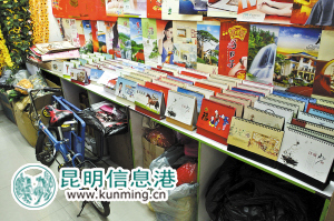 昆明螺蛳湾一家日历批发门市内很冷清,据店主介绍,2014年各式台历、日历销量很差 都市时报 记者杜弘禹/摄