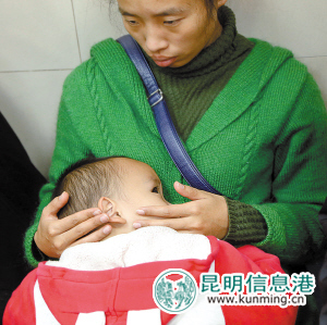 儿童医院内,一位候诊的女士安慰生病的孩子 ■ 都市时报记者 王小琴