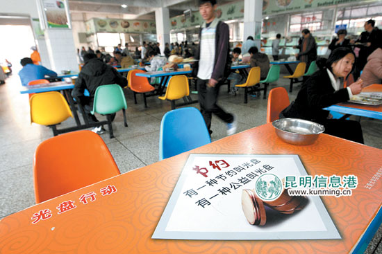 “光盘行动”是今年1月由北京市一家民间公益组织推行的公益活动,倡导就餐时不浪费粮食,吃光盘子里的饭菜,吃不完的打包带走。今年2月28日,昆明市消费者协会向全市广大消费者及餐饮企业经营者发出倡议,号召大家积极关注并参与“光盘行动”,进一步树立科学消费、绿色环保的社会新风。