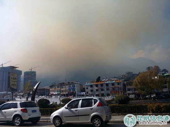 云南大理苍山突发火灾 下关市区烟雾弥漫(图)