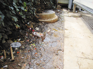 站外绿化带变垃圾场