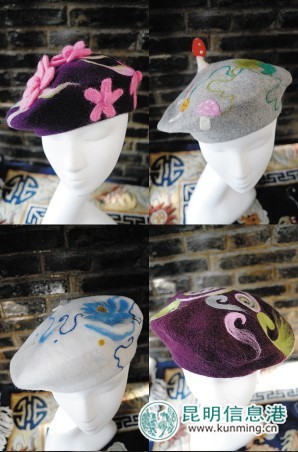在去年11月举行的束河亚洲青年艺术现场创意集市里,一个毛毡帽子摊很是吸引眼球,摊子上的帽子不仅五花八门,更是充满艺术和设计感。这些帽子的创作者,是束河古镇的一位居民土土。