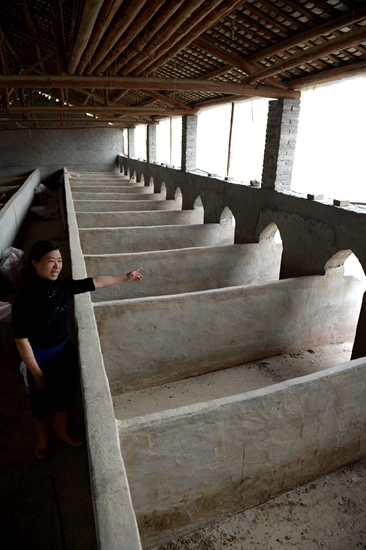 一养殖户站在空空的母猪栏前。去年底,她还拥有能繁母猪65头,如今存栏已不到20头。新华社