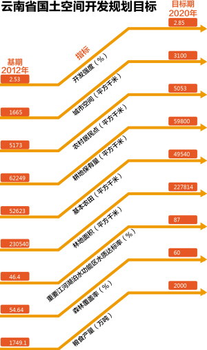 到2020年,主体功能区布局基本形成时,小康社会全面建成,云南的土地空间格局将更清晰、土地空间管理更精细科学、城乡区域发展更协调、资源利用更集约高效、生态系统更稳定。