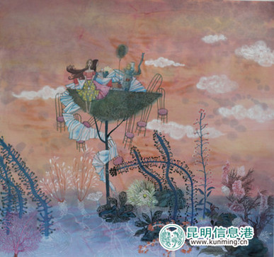 昆明信息港讯 记者王素晶 五月伊始,在云南大学研究生画室里初见吴若木。如果不是之前有了解,很难想象底蕴深厚、气势恢宏的那些国画作品是出自一位88年生、外形瘦小的青年艺术家之手。在深入交谈了之后,不得不承认,怀有一颗浪漫少女心的吴若木能在严肃庄重的写意画中融入浪漫色彩元素一点也不意外。画室里整齐摆放的几张大桌上摆着各种调好或没调好的颜料盘,四面墙壁挂满了画作,一位导师在和学生亲切交谈,屋子里荡漾着时而欢快时而激昂的伴奏乐,弥漫着墨香和浓厚的艺术气息。