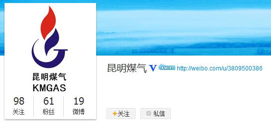 昆明煤气官方微博首页截图