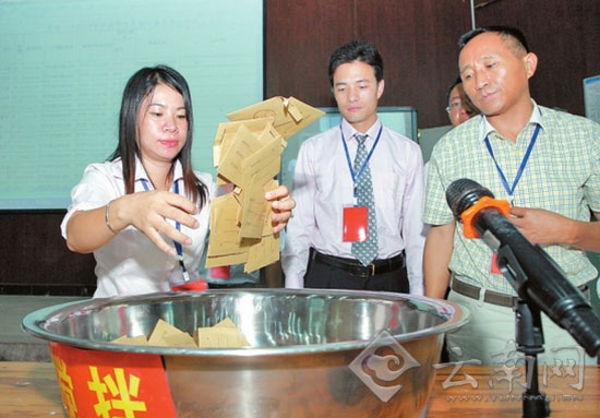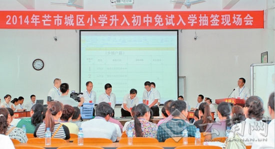 芒市城区2014年小升初免试入学抽签现场会。通讯员杨帮庆/摄