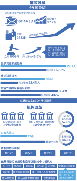 14日上午,云南省纪委监察厅召开新闻发布会。今年1月至6月,省纪委监察厅共接受信访举报16014件(次),立案1903件,其中厅级干部11件,去年同期为5件;县处级干部102件。1547人被给予党纪处分,移送司法机关164人。