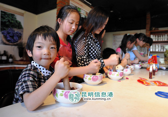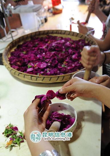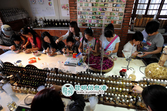 市民自己采摘玫瑰后,在昆明德馨香水博物馆体验手工制作玫瑰糖、香水、香皂的乐趣。记者周密/摄