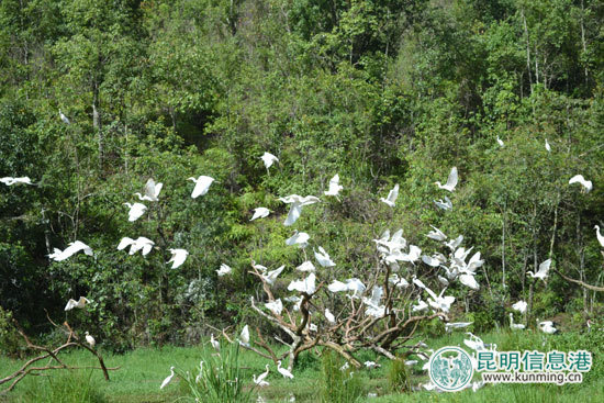 大批野生白鹭群组团来此孕育生命